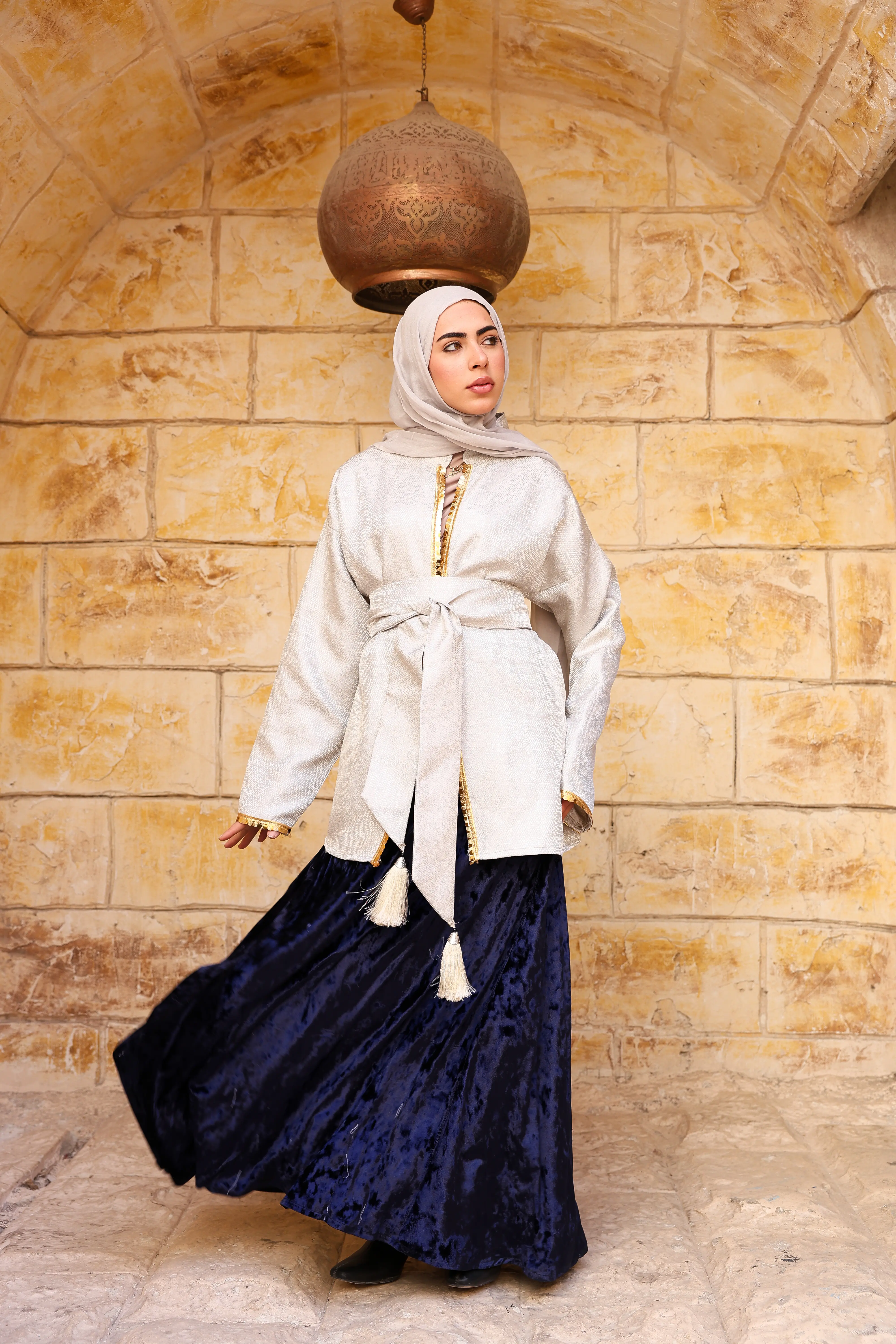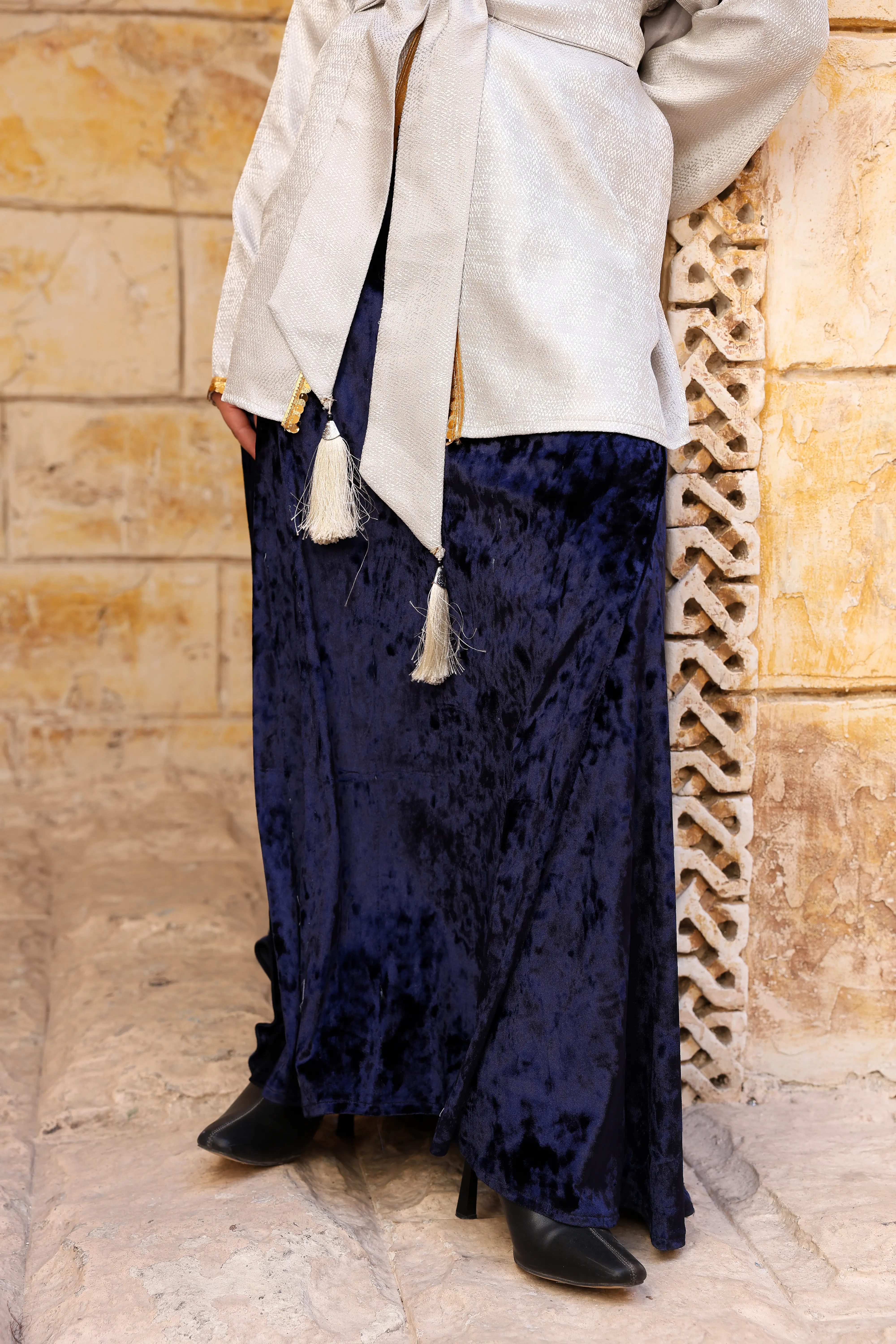 جيبة انسيابية من خامه القطيفة بقصه مميزة