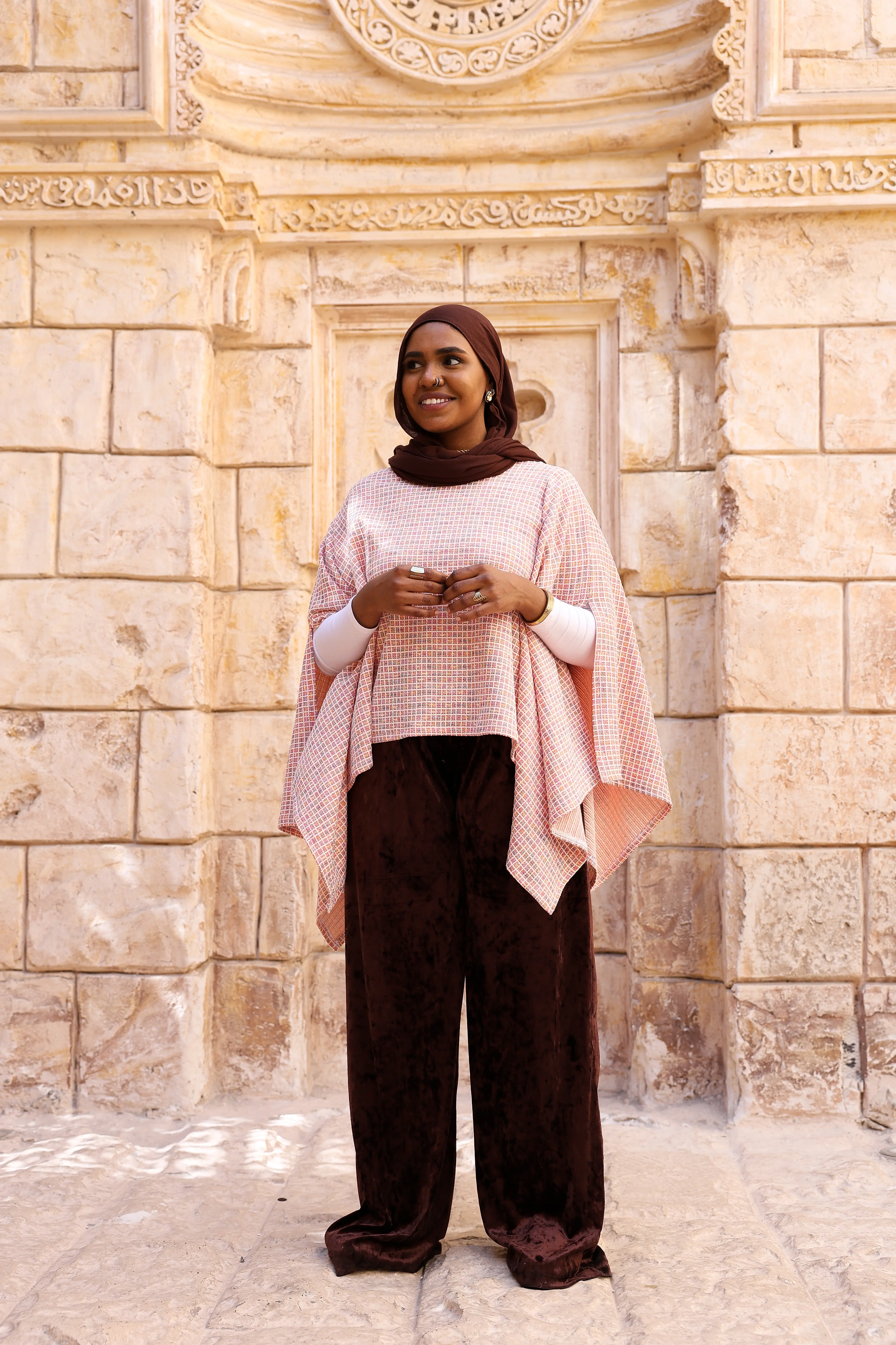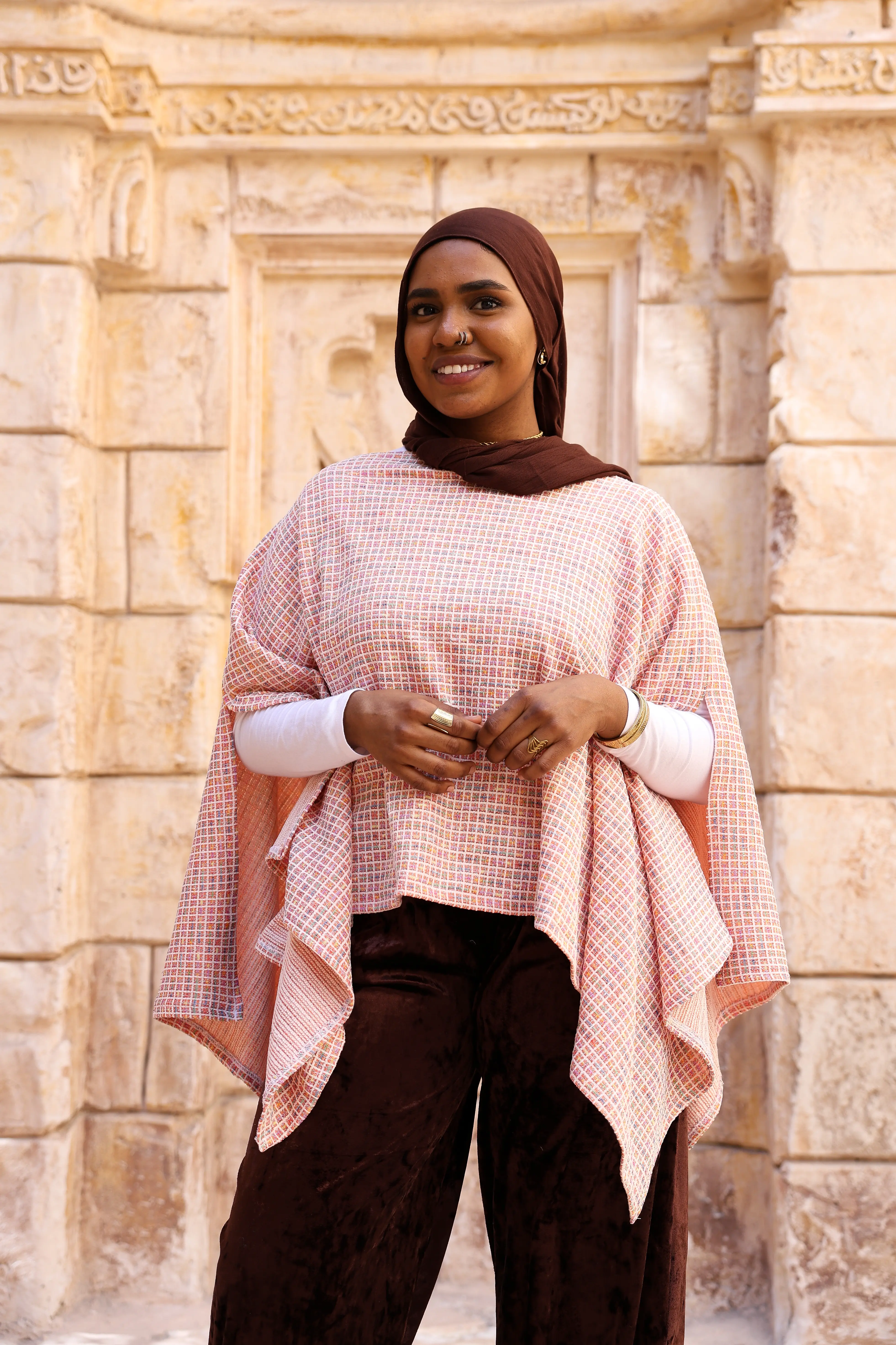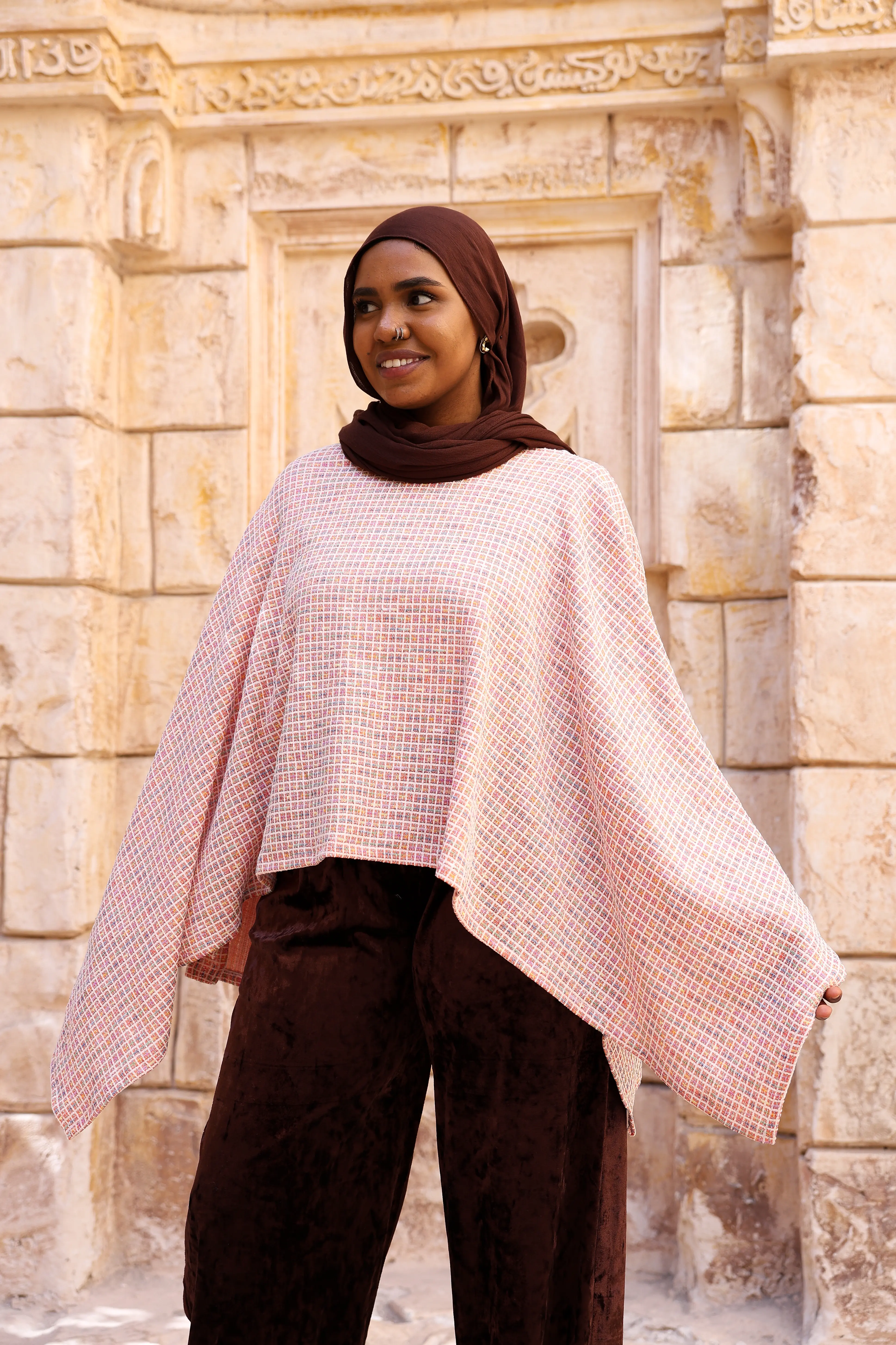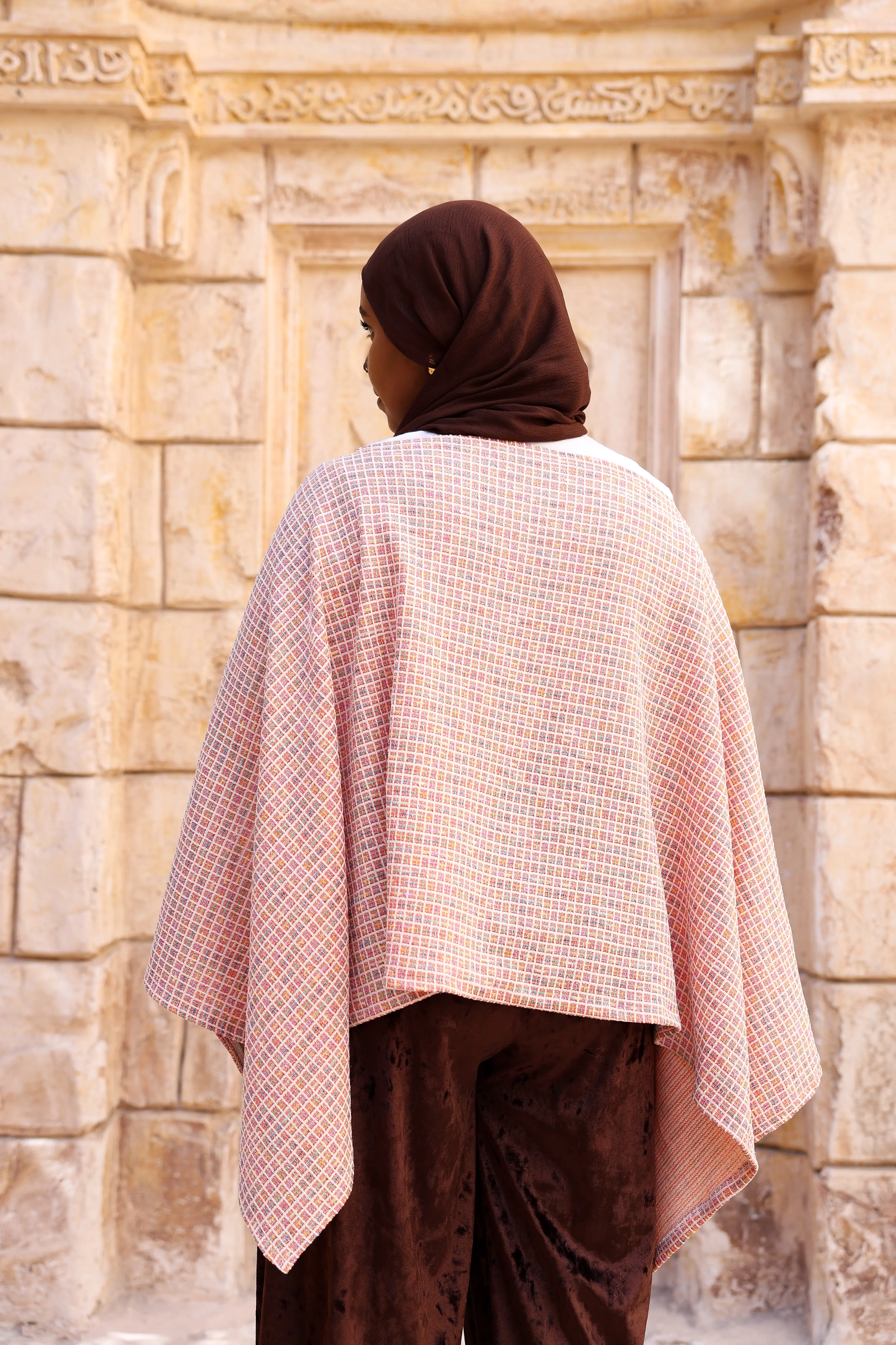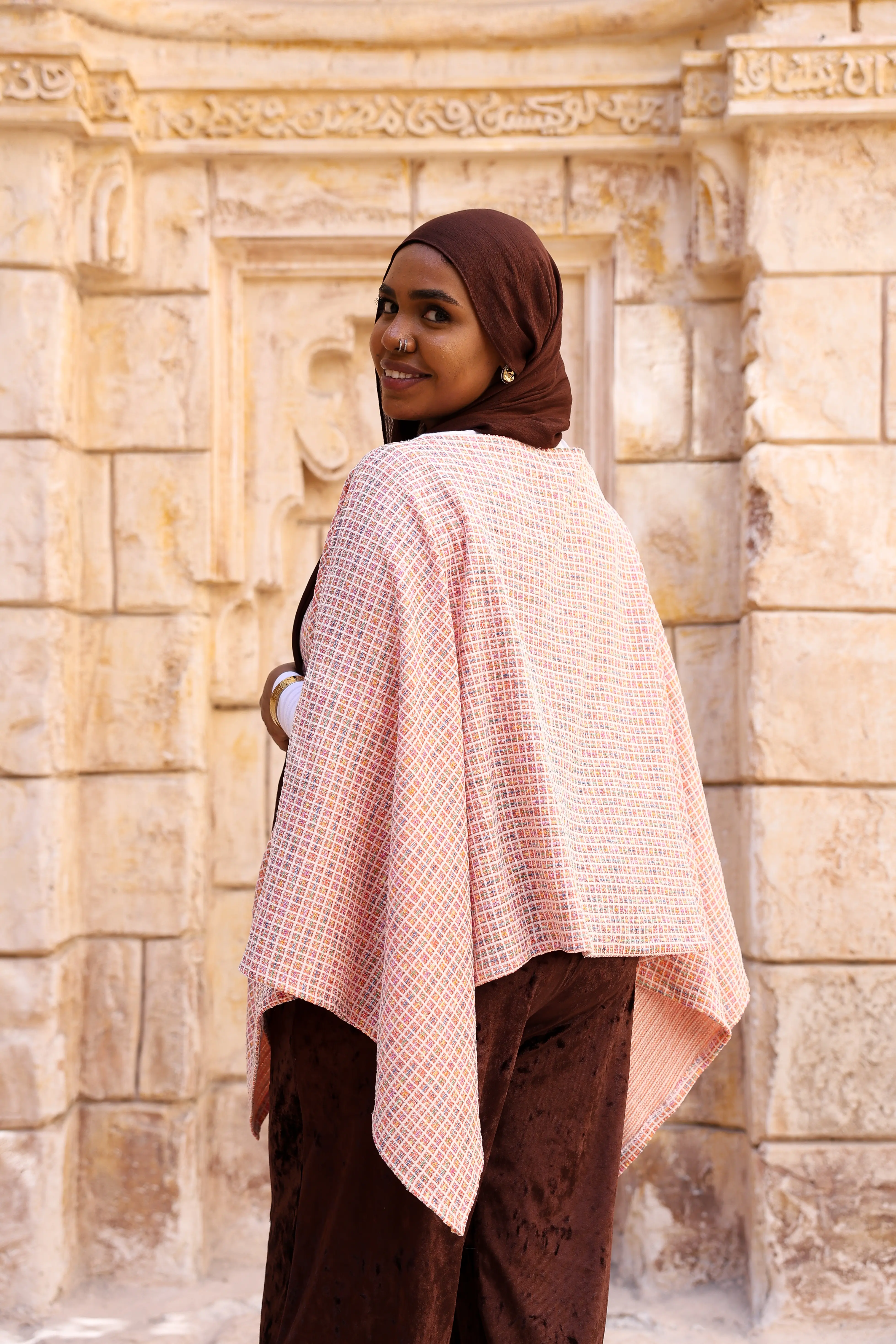 كاب “ستره” مصمم بقَصّة واسعة وانسيابية بتدي إحساس بالدفء والاحتشام، مع طبقات ناعمة بتتحرك برقة وتبرز جمال الإطلالة. النقشة الهادية مع الأطراف المتدرجة بتضيف لمسة عصرية تناسب الخروجات الراقية والمناسبات الخاصة.